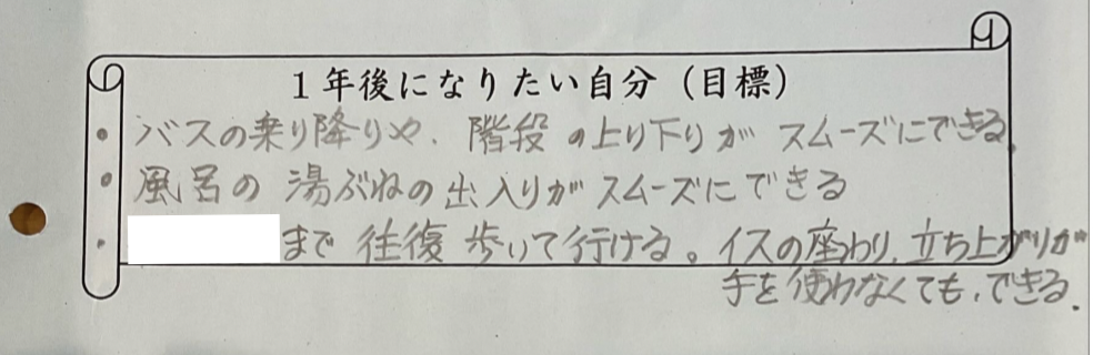 当初は現状や将来への不安に表情も曇られていましたが、運動・ケア・生活上の工夫を真摯に取り組んでくださり、回を重ねるごとにできることが増え、笑顔も増えていかれたことが何より嬉しく思います。
