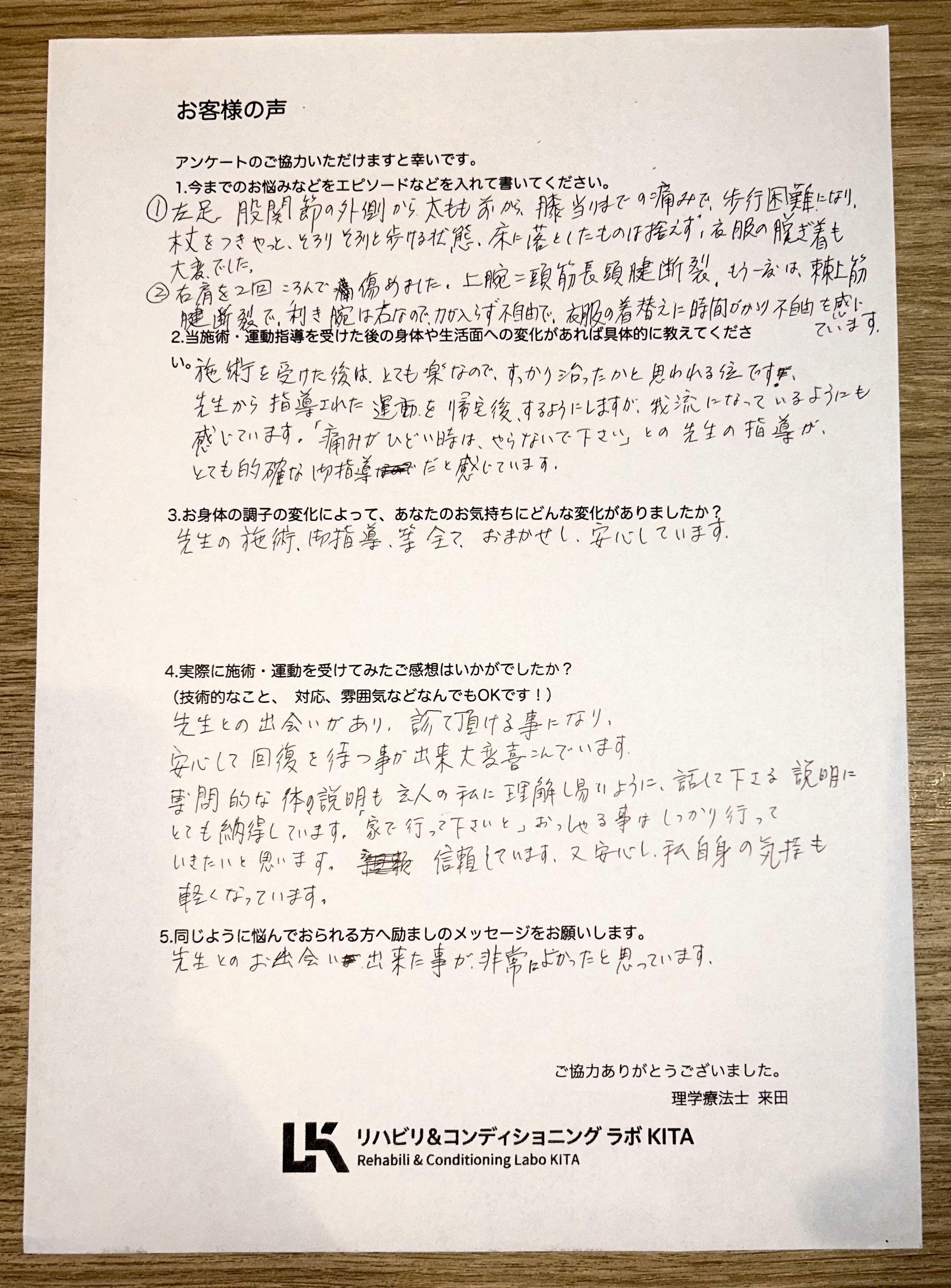 施術や運動を通じて症状が軽快され、またご指導内容にも安心して取り組んでいただけたことを大変嬉しく思います。